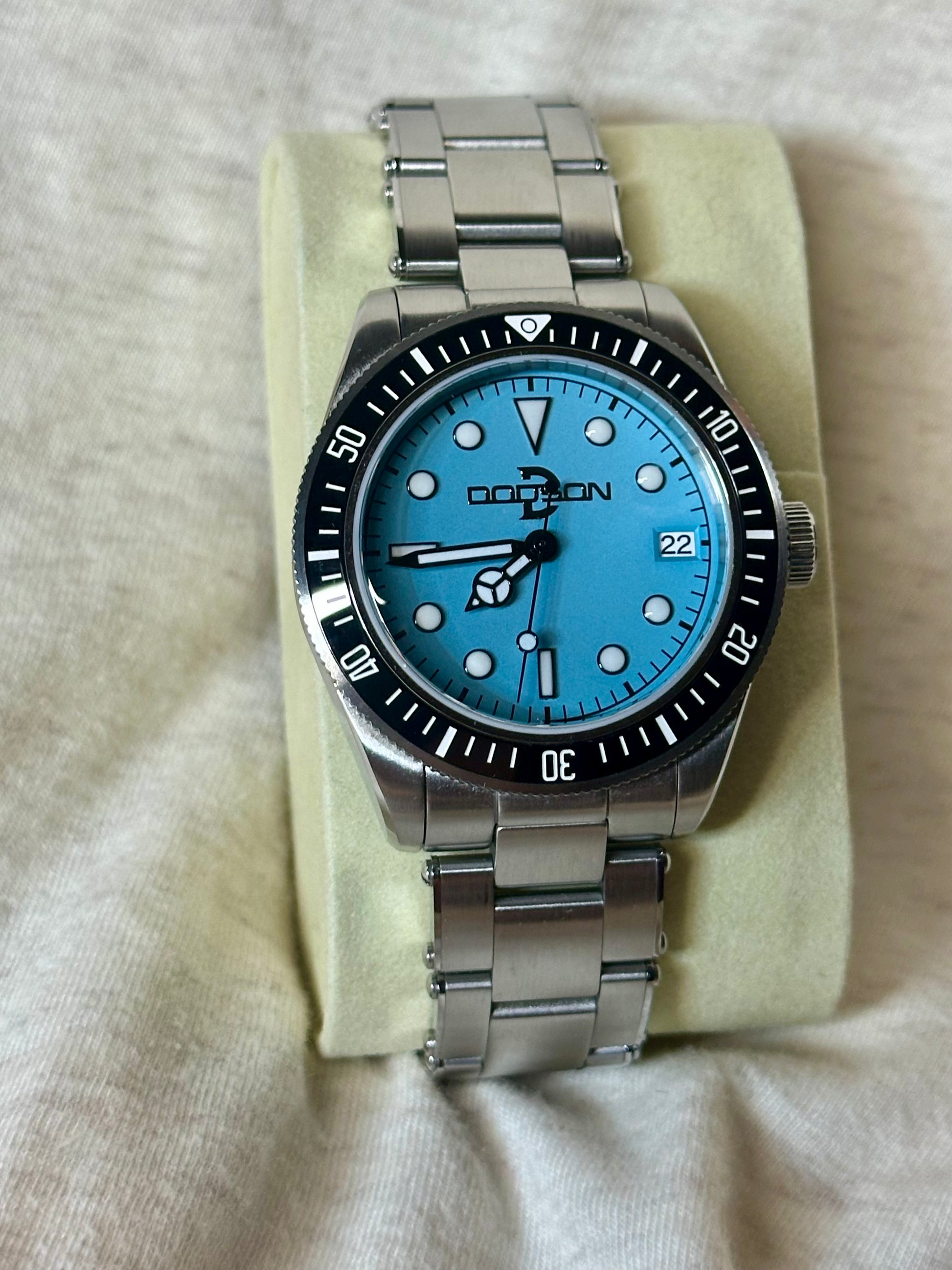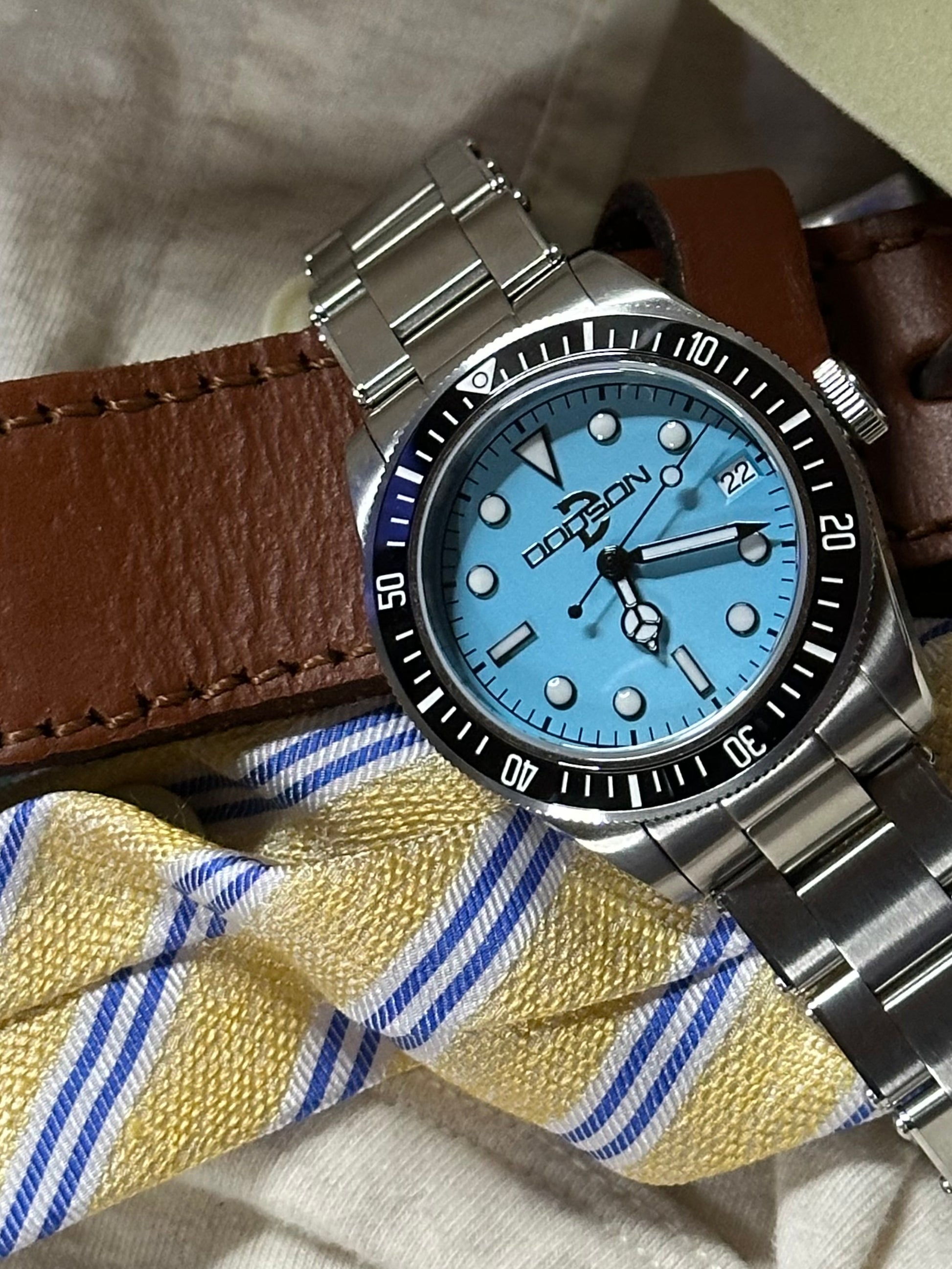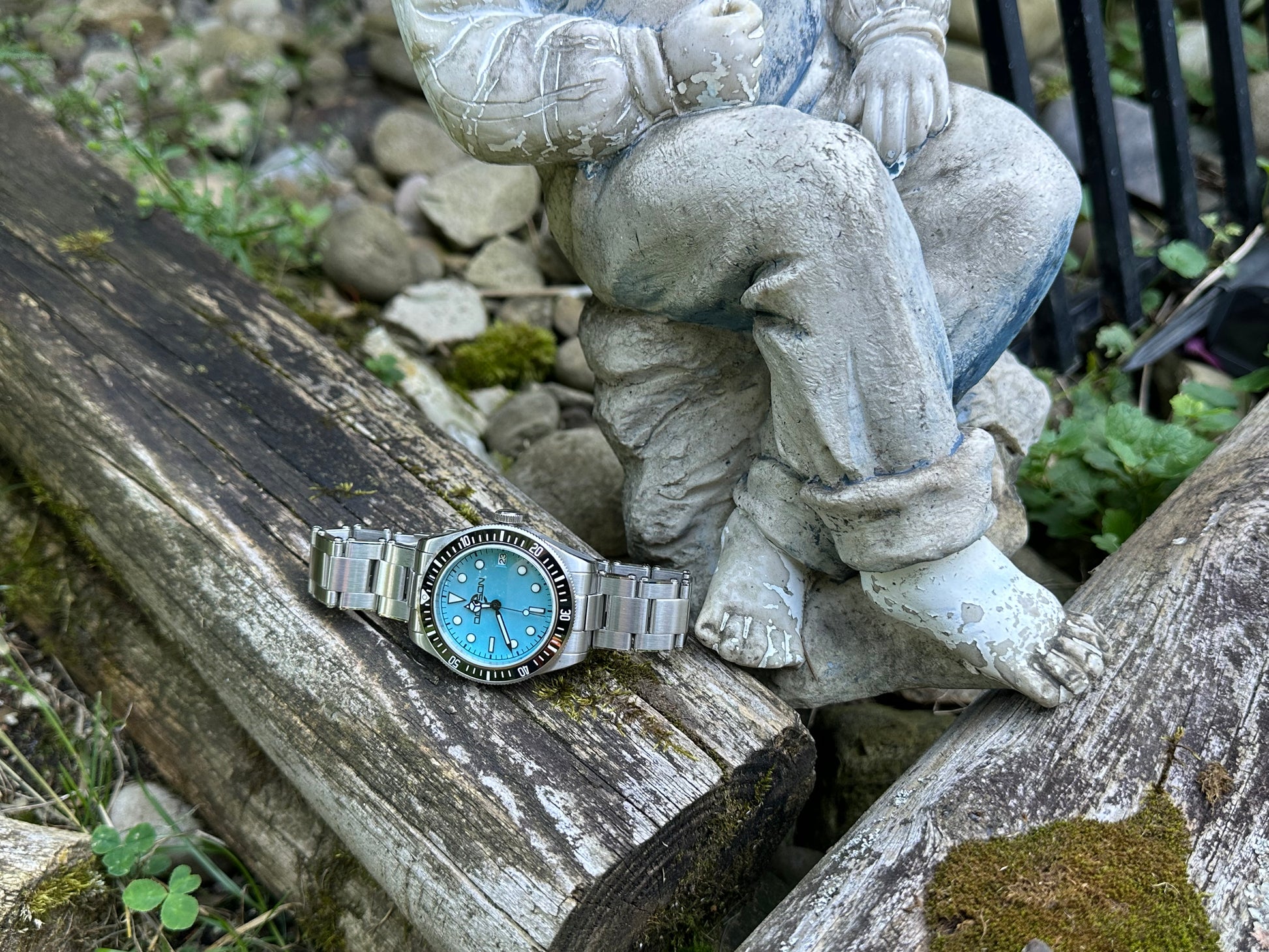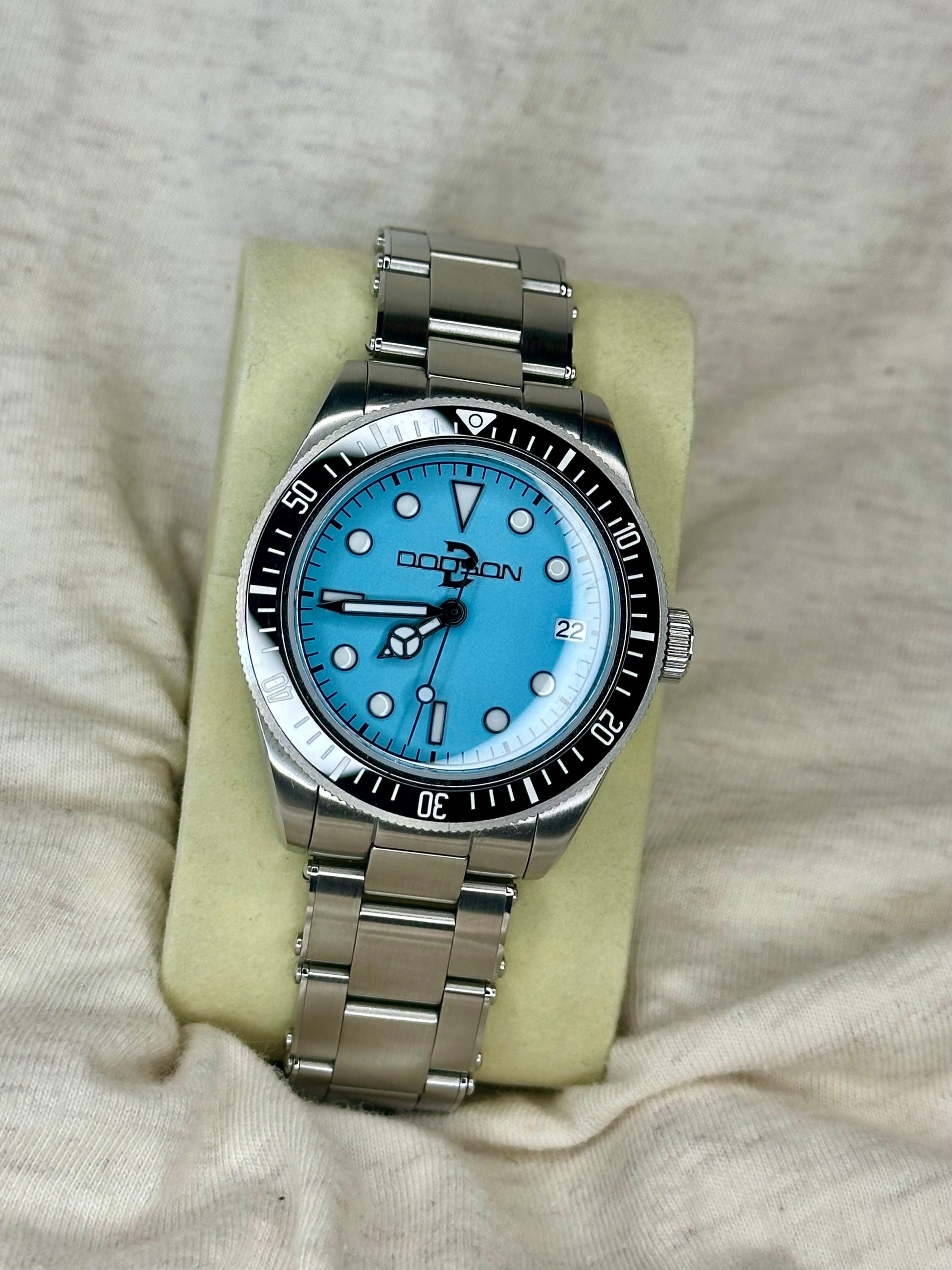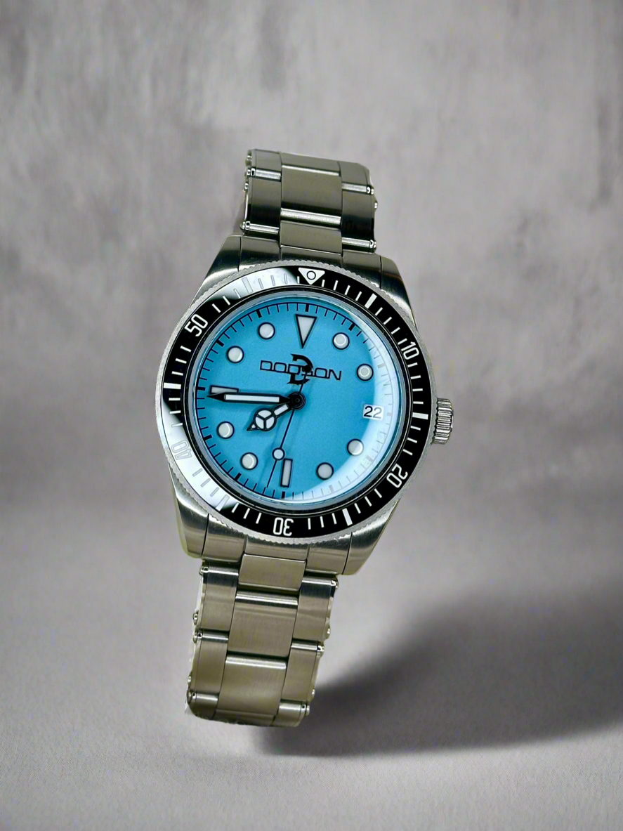 The 39mm vintage style submariner watch boasts a classic design and a sturdy stainless steel rivet bracelet. Its omni directional ceramic bezel and brushed steel finish make it perfect for everyday wear. With its comfortable 39mm size, this dive watch is suitable for any wrist.