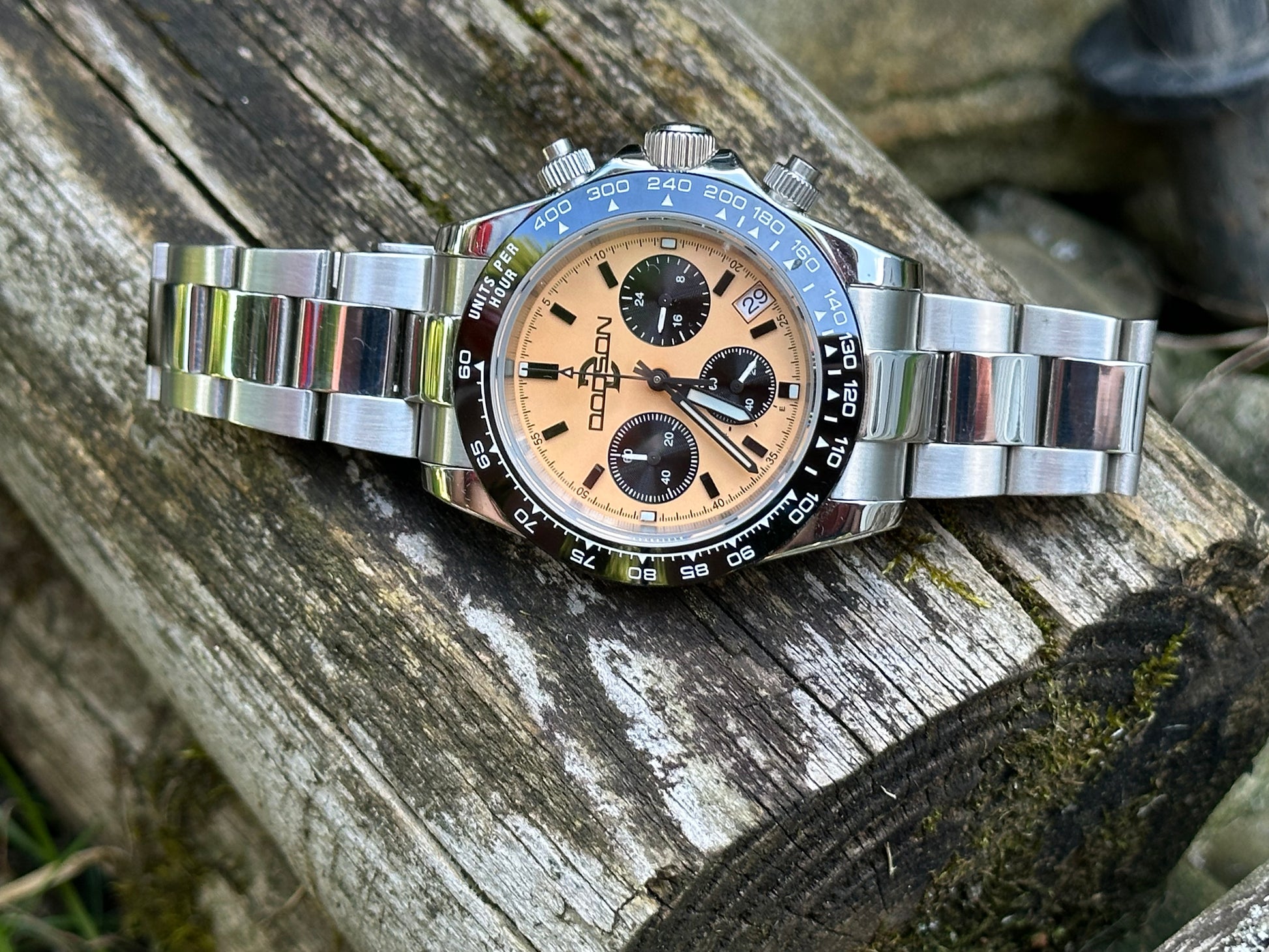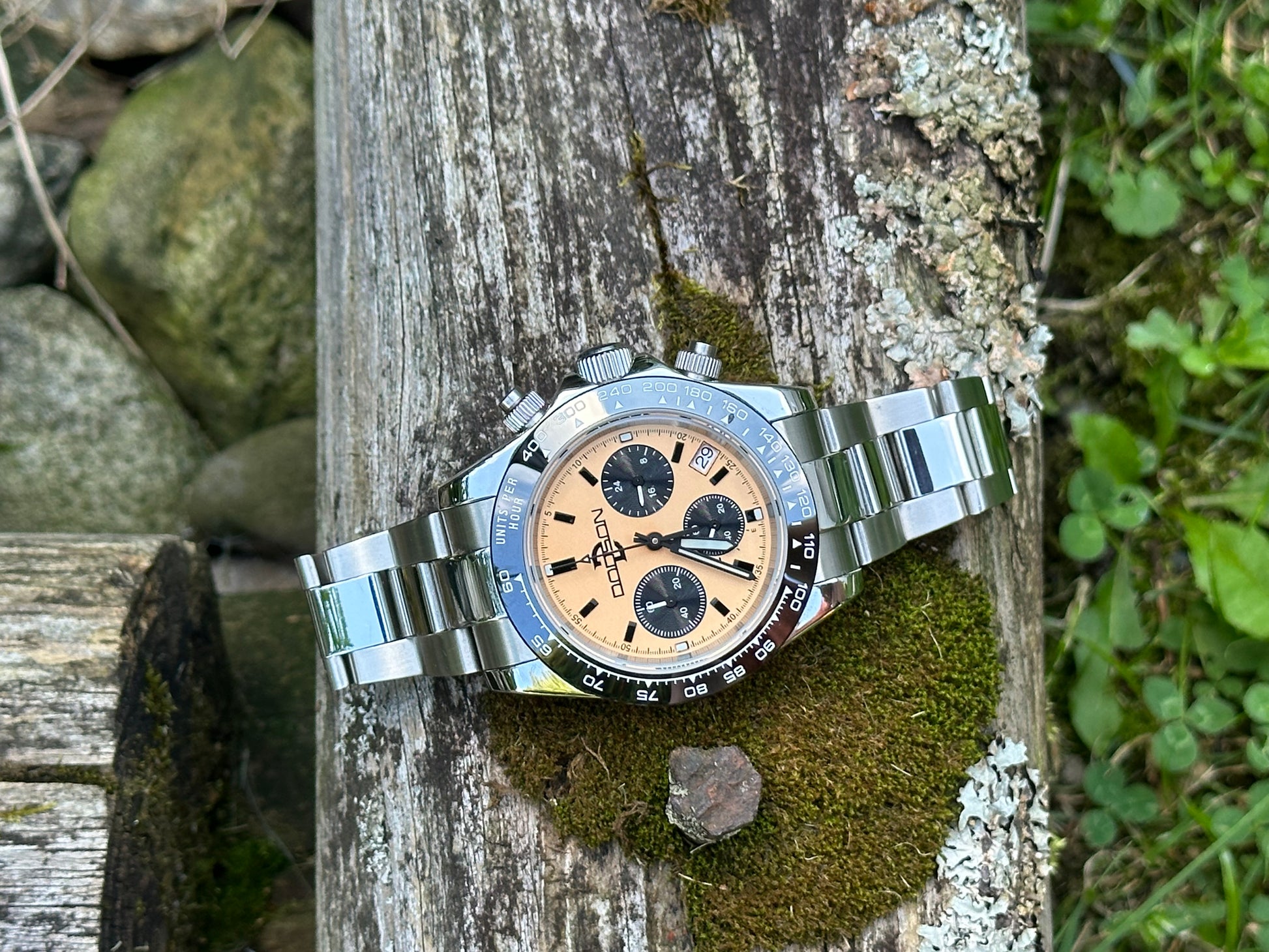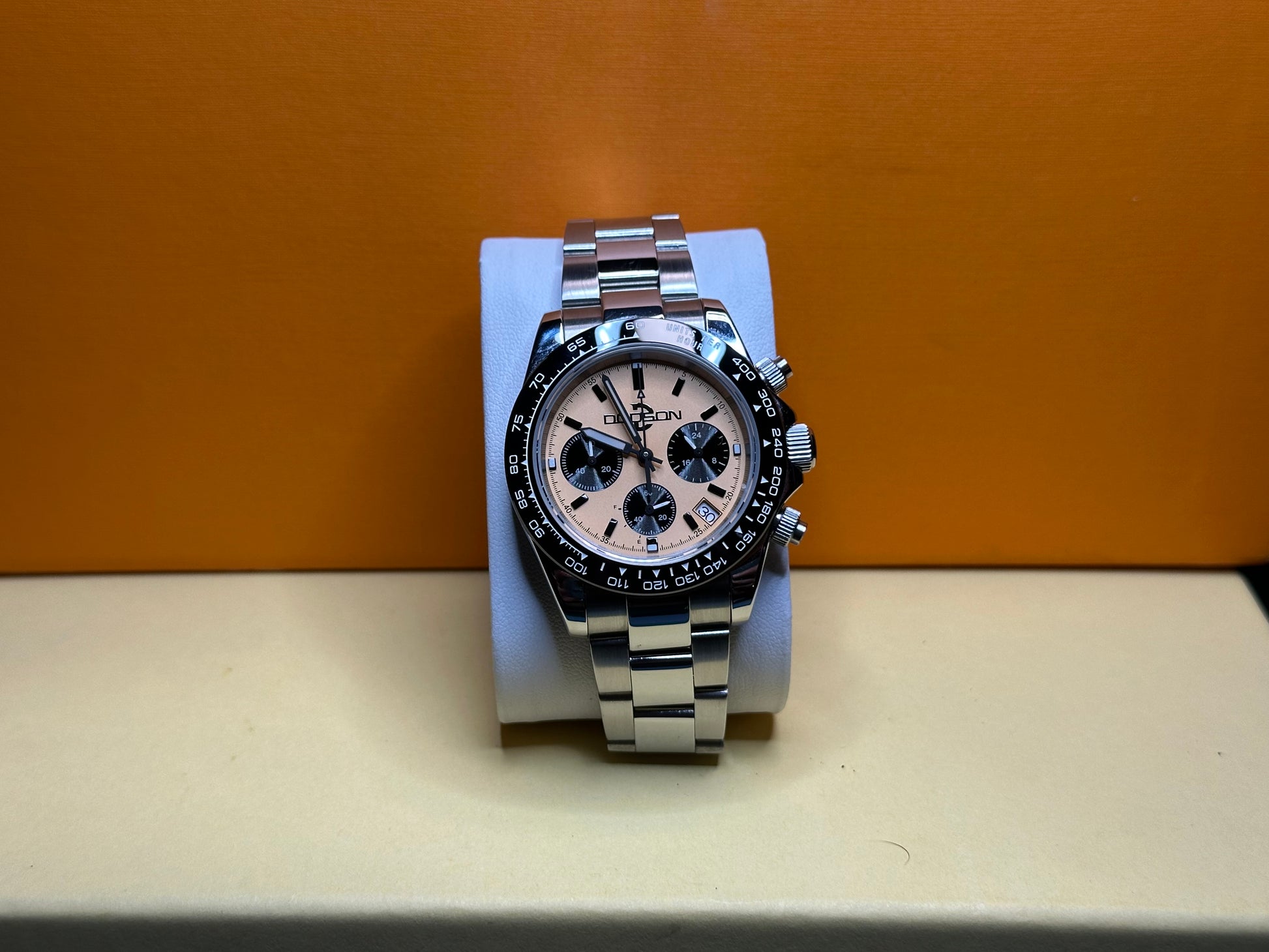 40mm sand dial Vk63 mechaquartz chronograph w/ black bezel