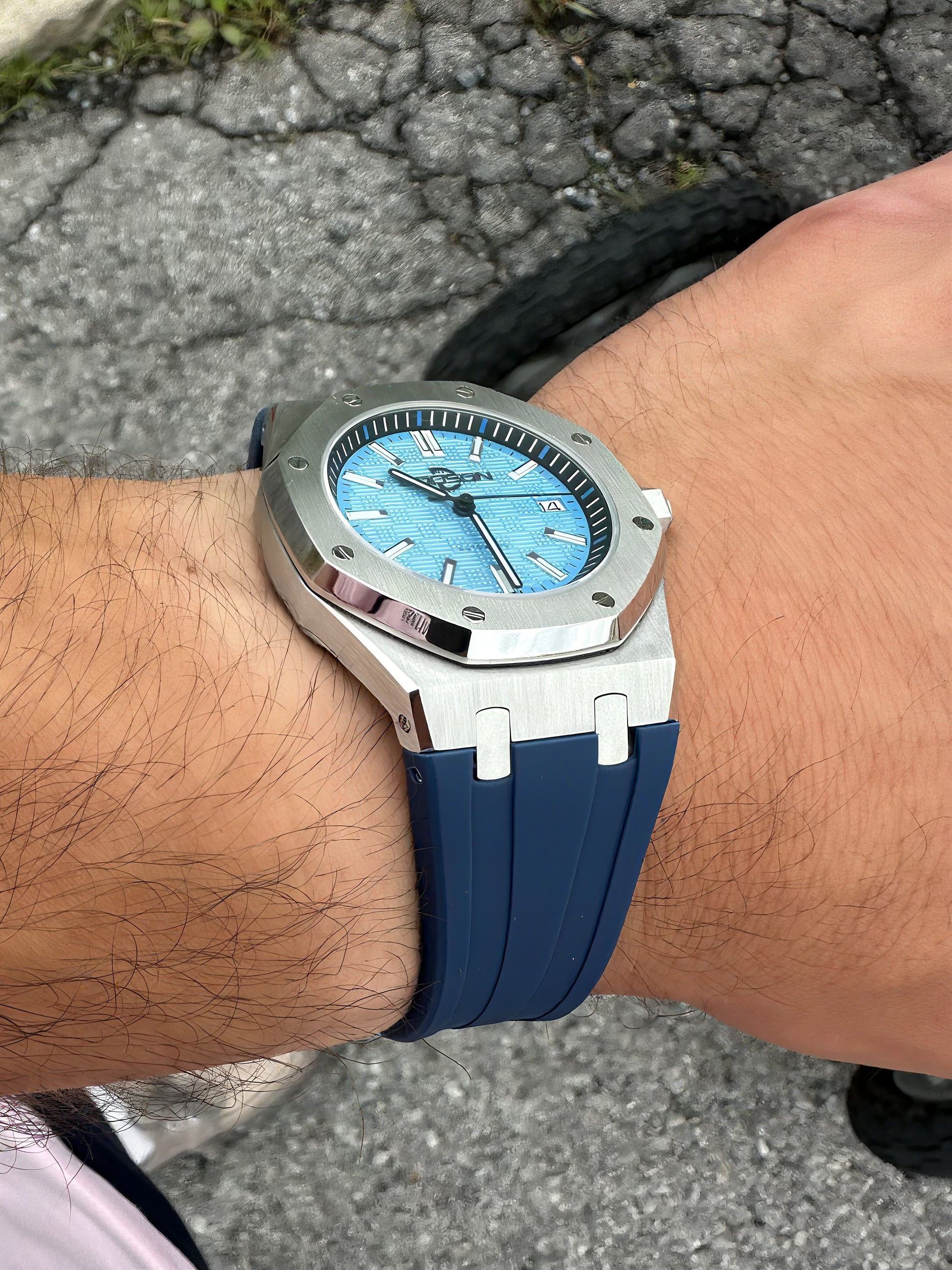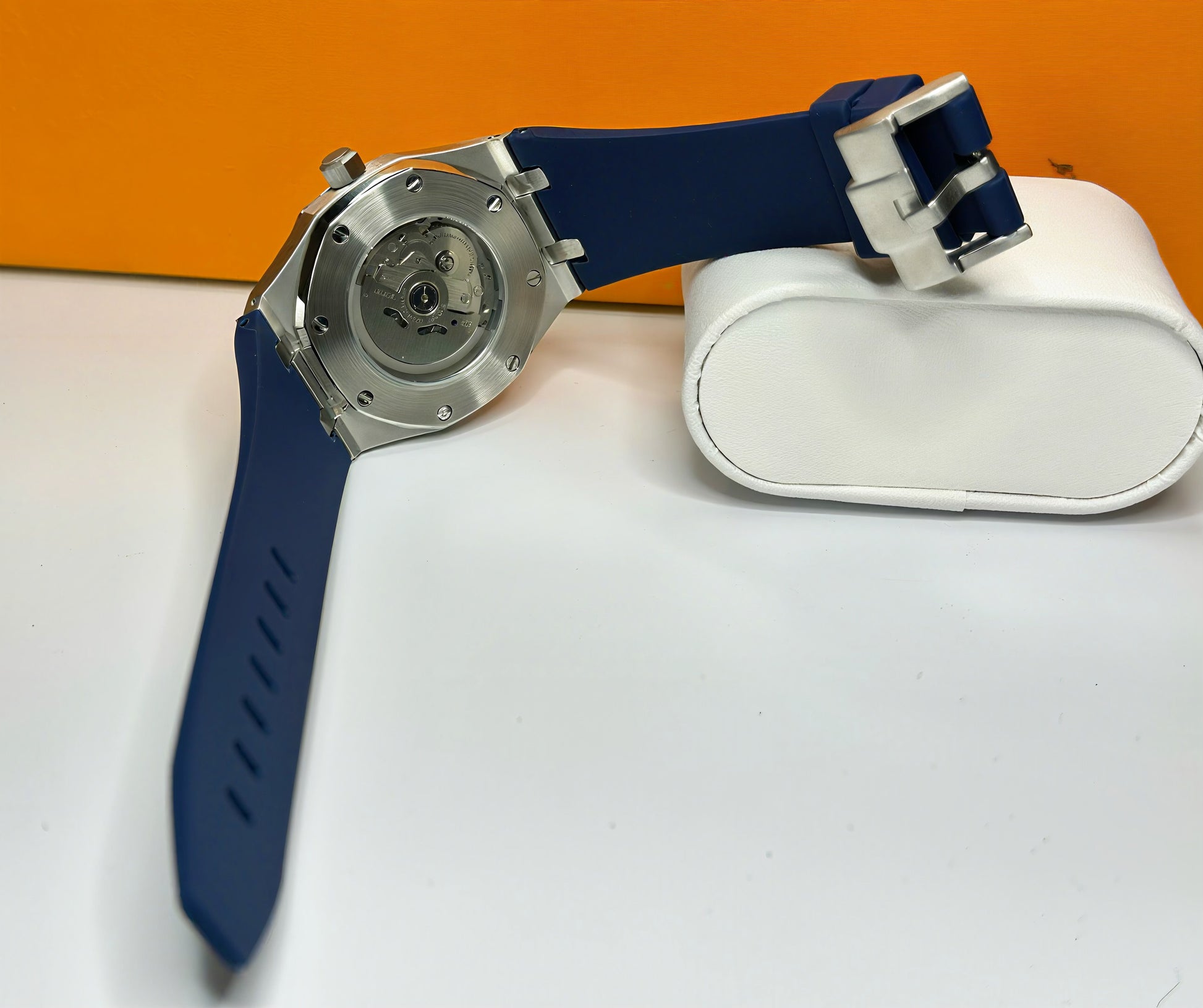 42mm Automatic stainless steel Sport Watch on blue silicone strap