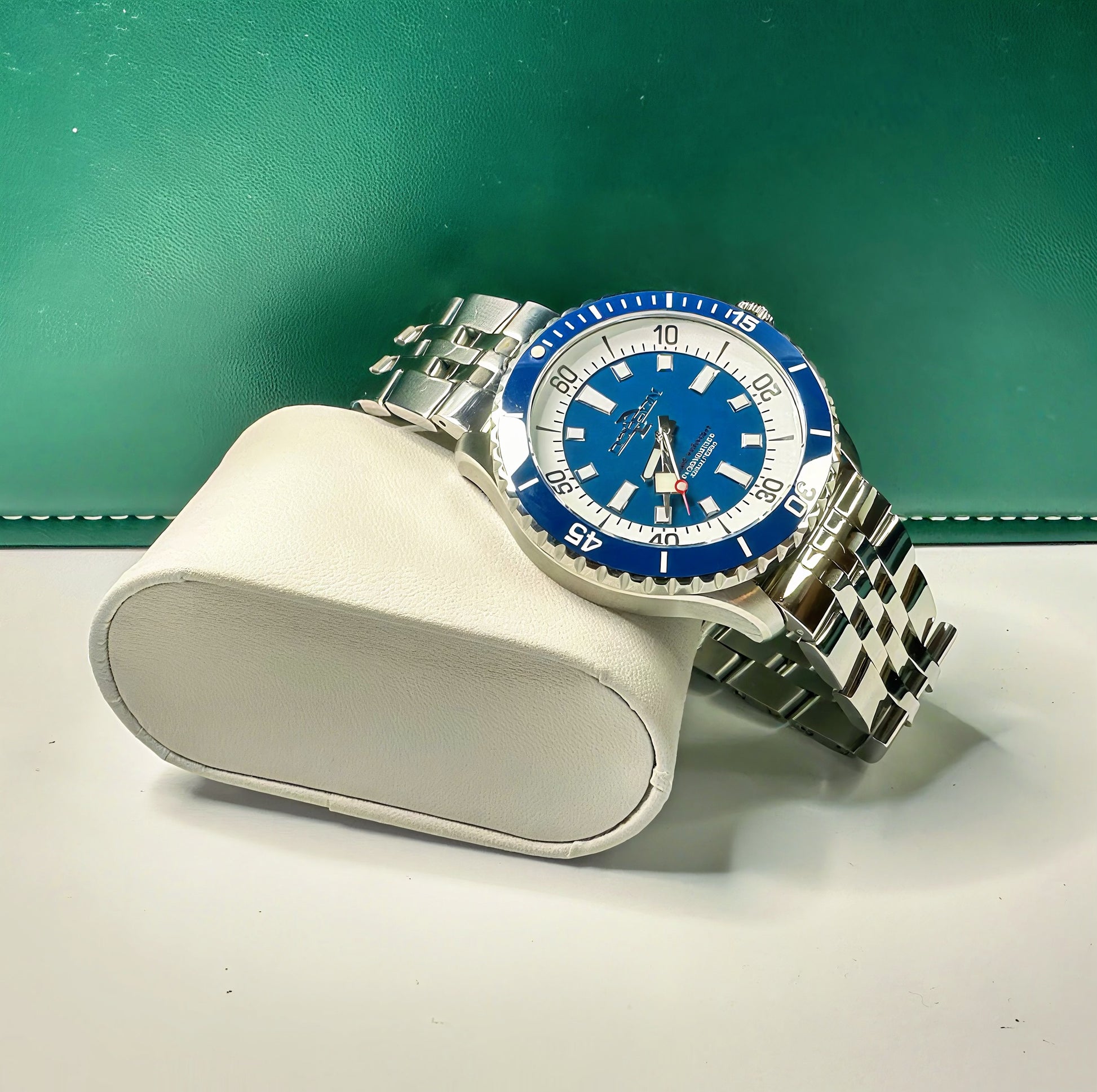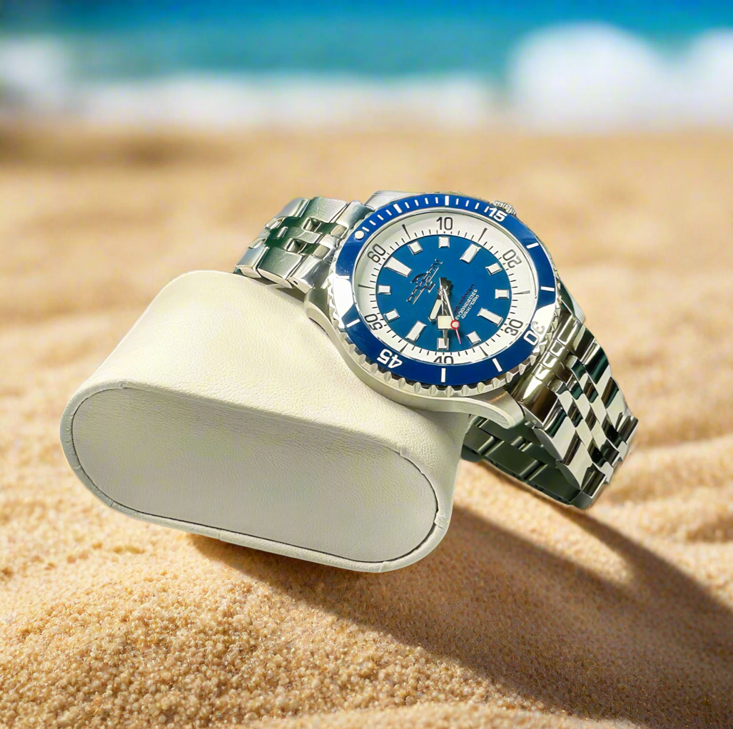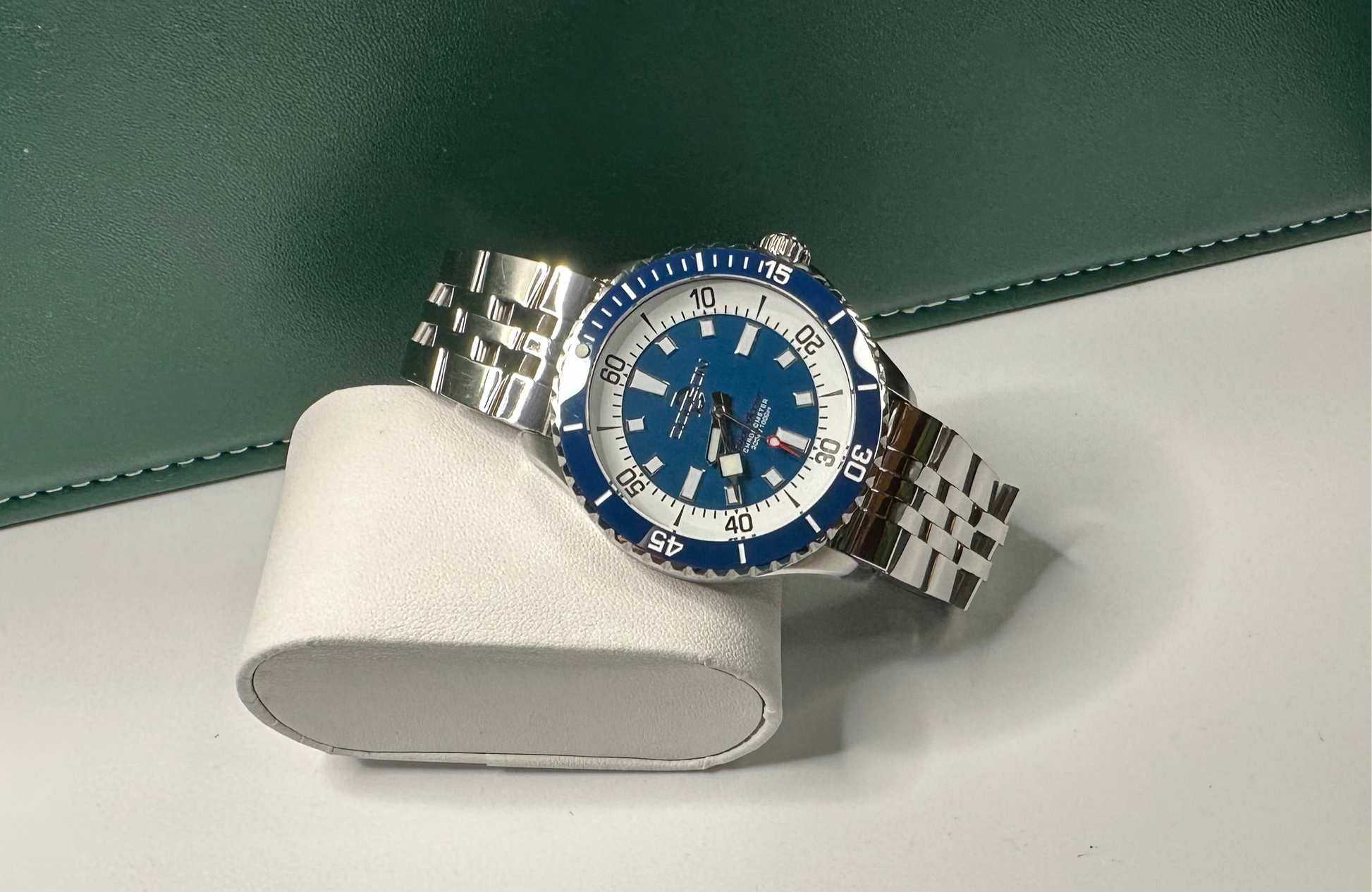 44mm Super Ocean Automatic Homage Watch- Blue Bezel, Blue Dial on stainless steel bracelet