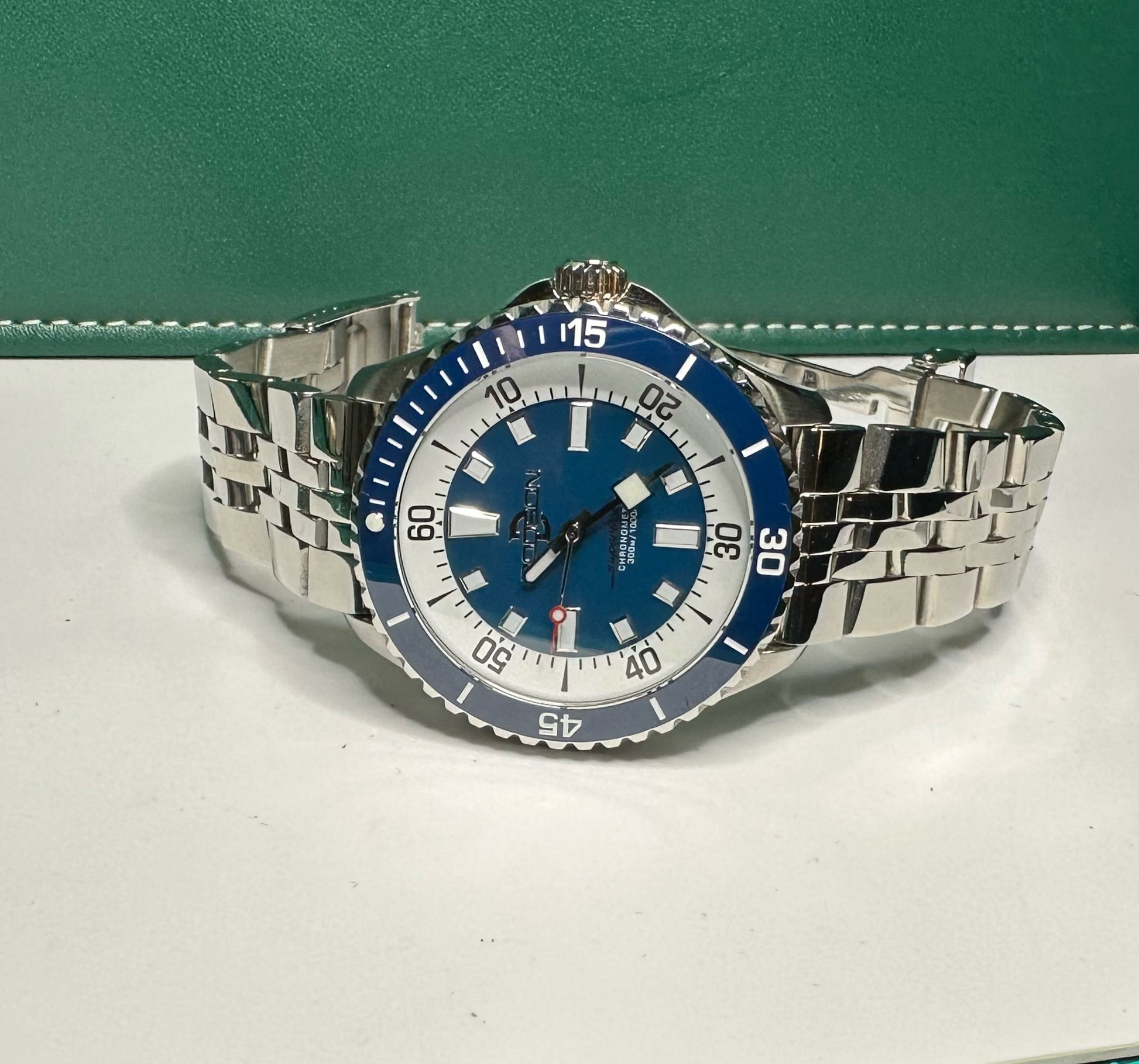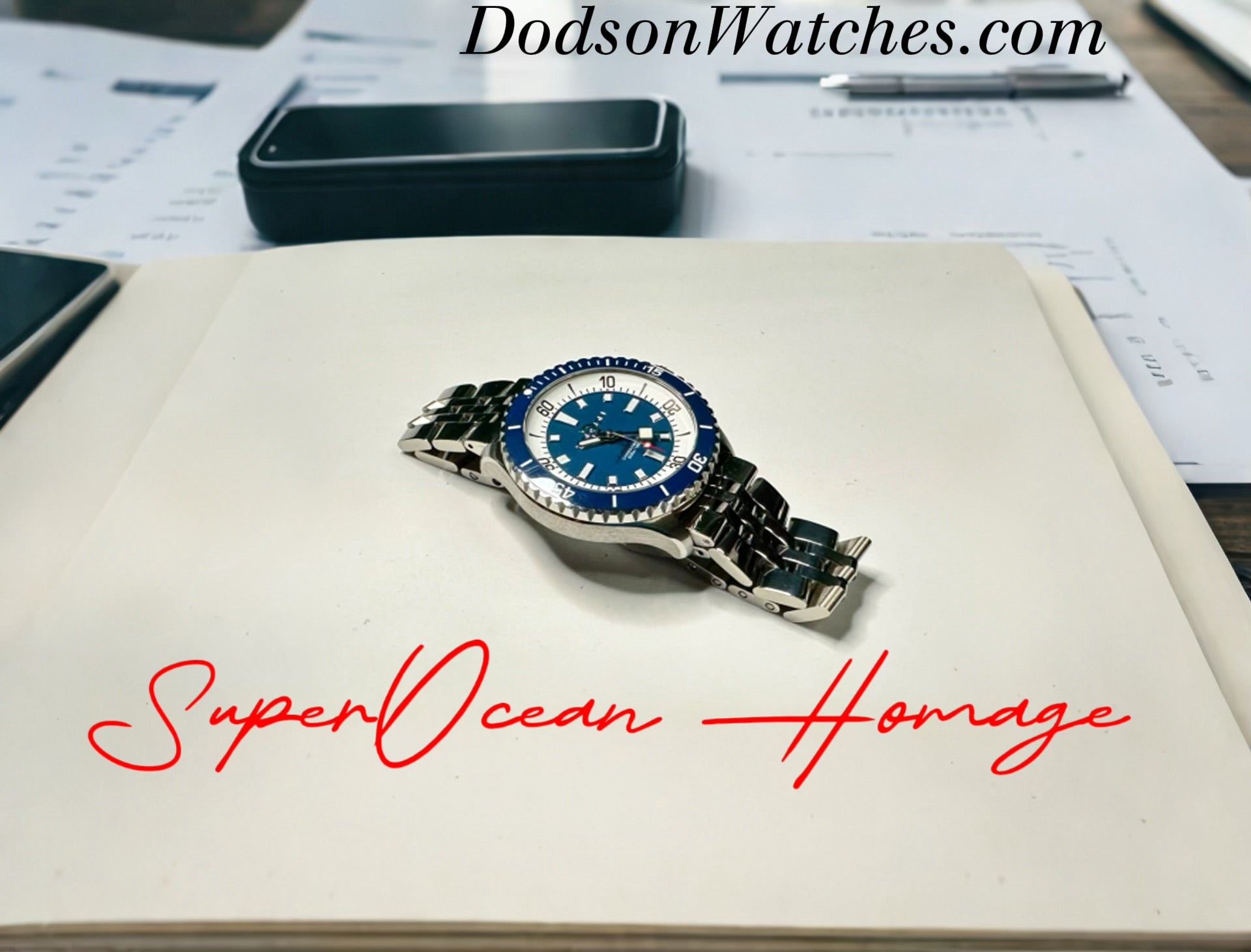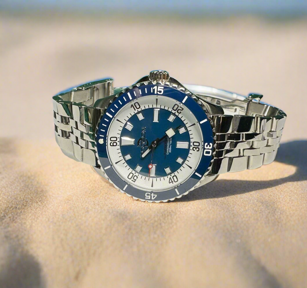 44mm Super Ocean Automatic Homage Watch- Blue Bezel, Blue Dial on stainless steel bracelet