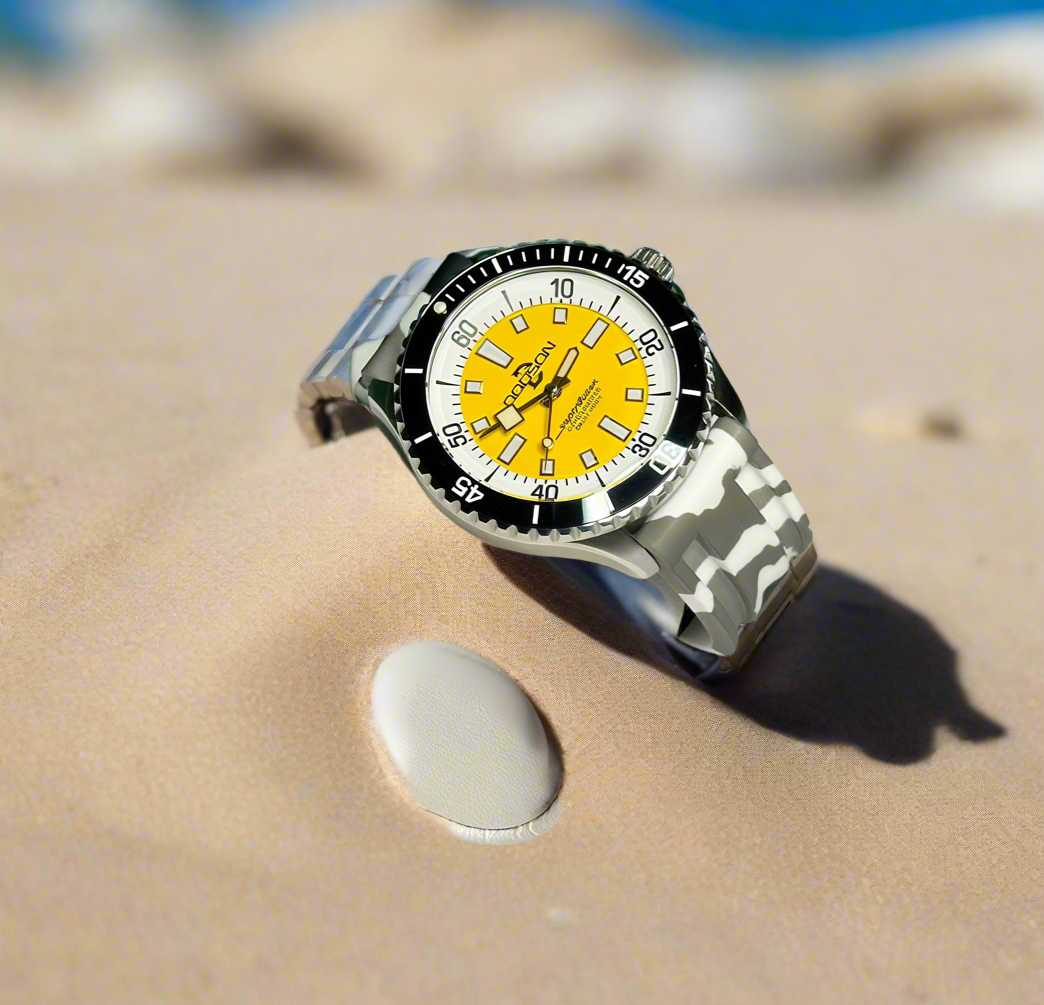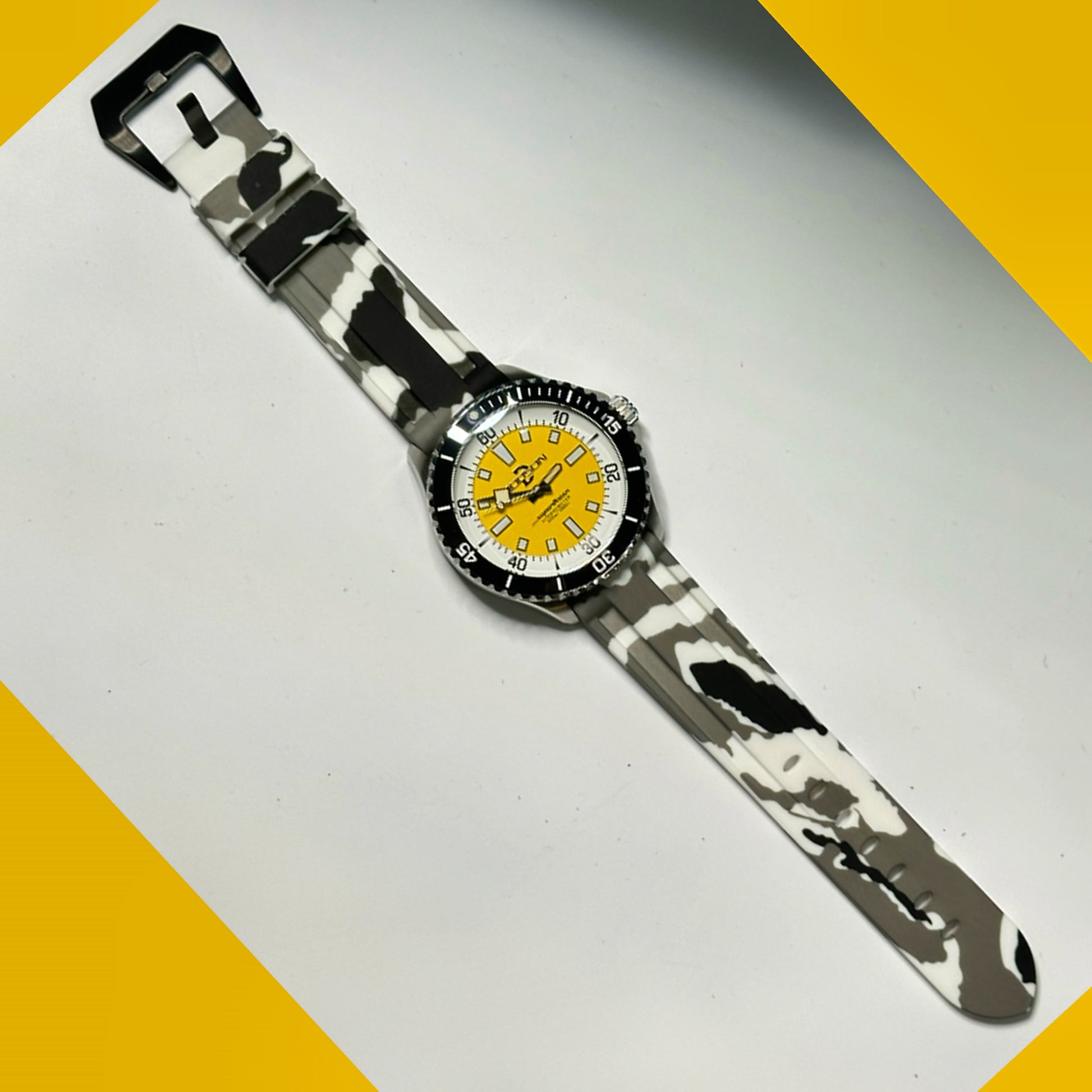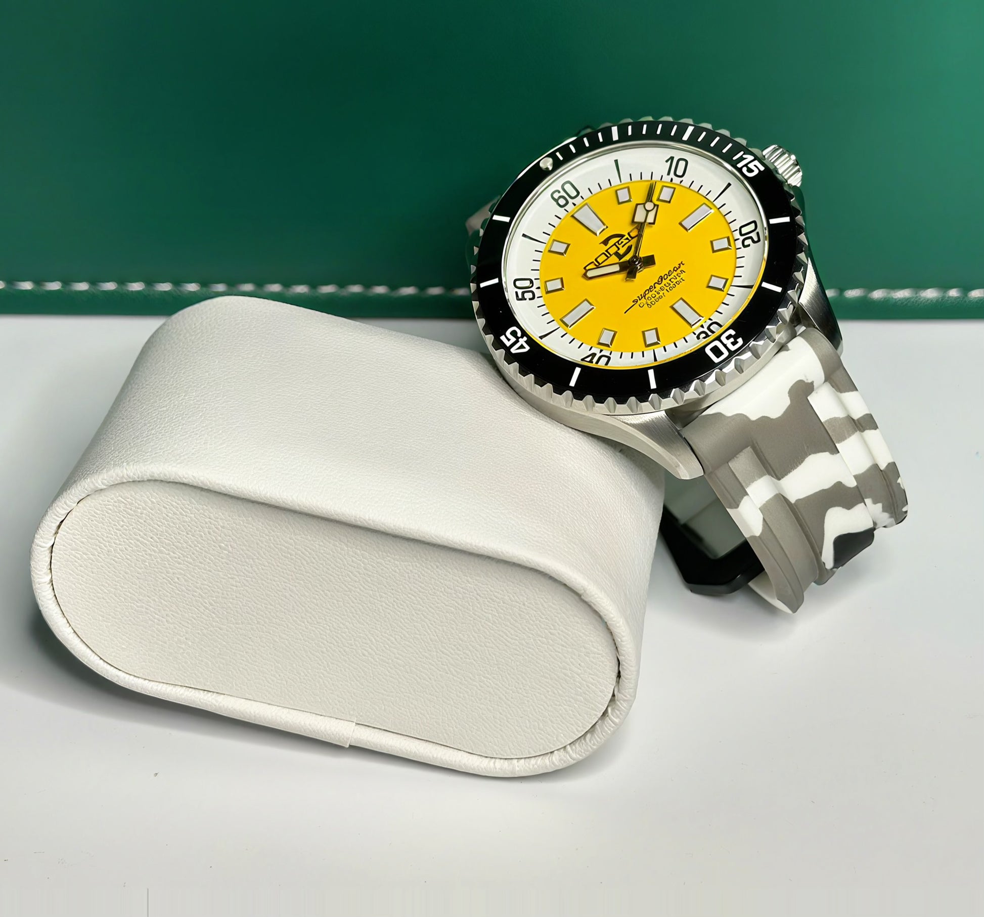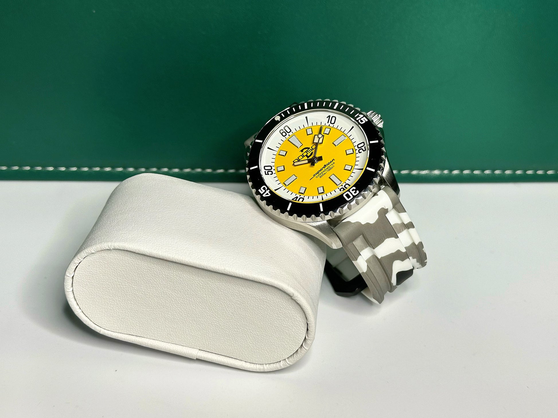 44mm Super Ocean Automatic Homage Watch- Black bezel, Yellow dial, rubber strap